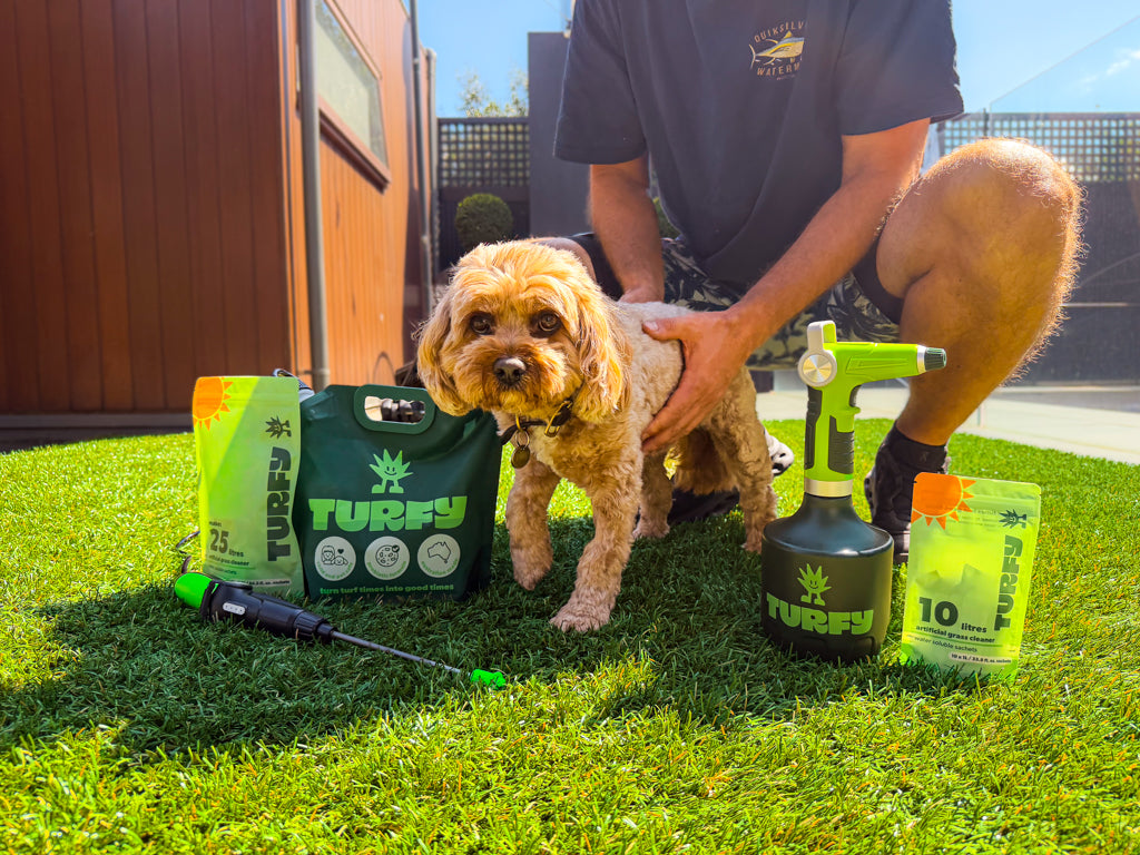 Turfy is specifically designed and tested to work on artificial grass. While the formula is safe, we don't recommend using it on other surfaces like natural grass or indoor carpets, as it's optimised for the unique drainage and base layer of turf.
